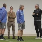 El emérito, flanqueado por sus hijas las infantas Elena y Cristina.